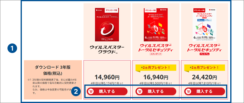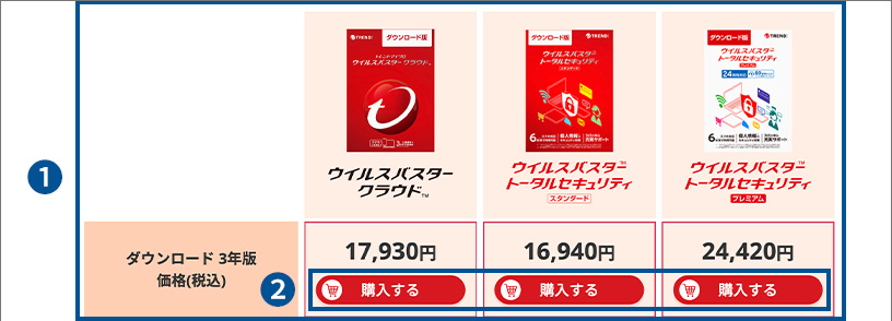 - 「購入」や「今すぐ買う」と記載のある購入ボタンを押して購入手続きへお進みください。
