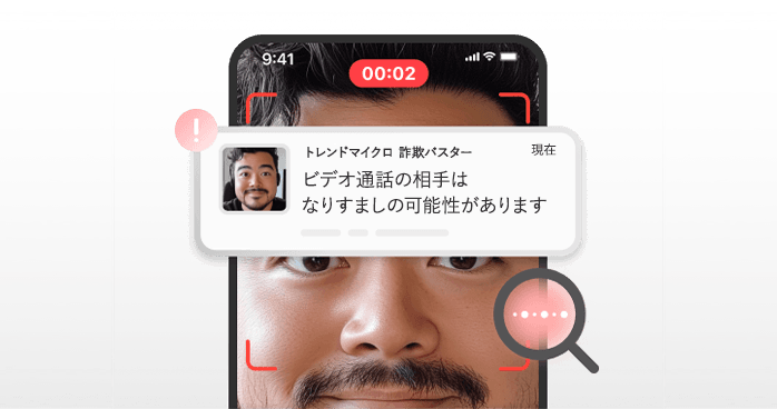 ビデオ通話やライブ配信において、ディープフェイクによるなりすましの可能性がある際は警告を表示します。LINE、Instagramなどの、ビデオ通話機能やライブ配信機能があるアプリ各種でご利用いただけます。